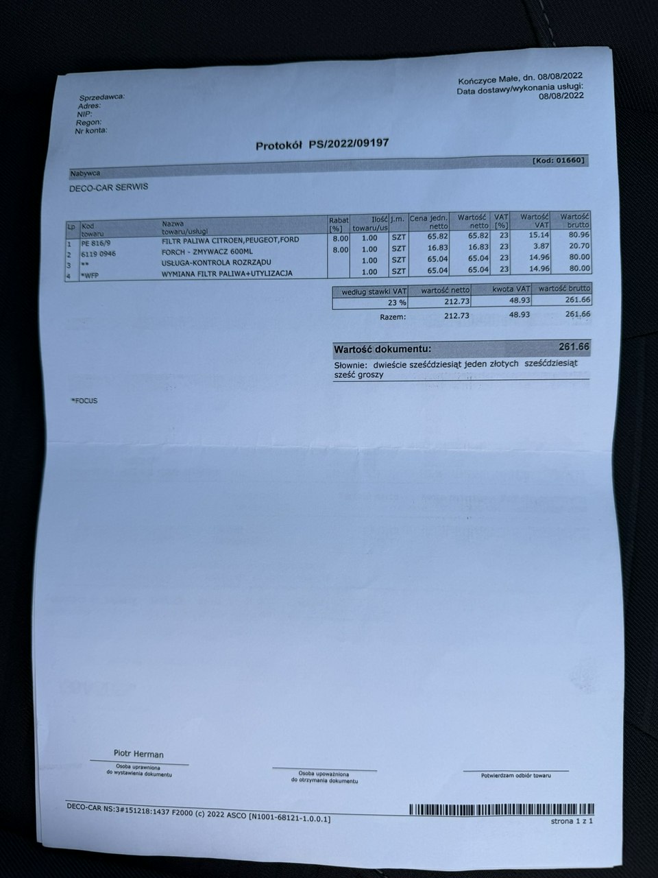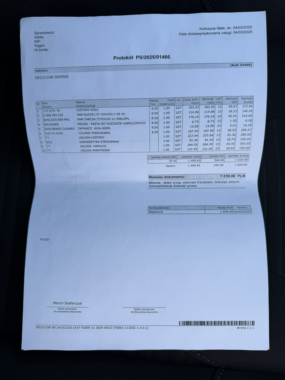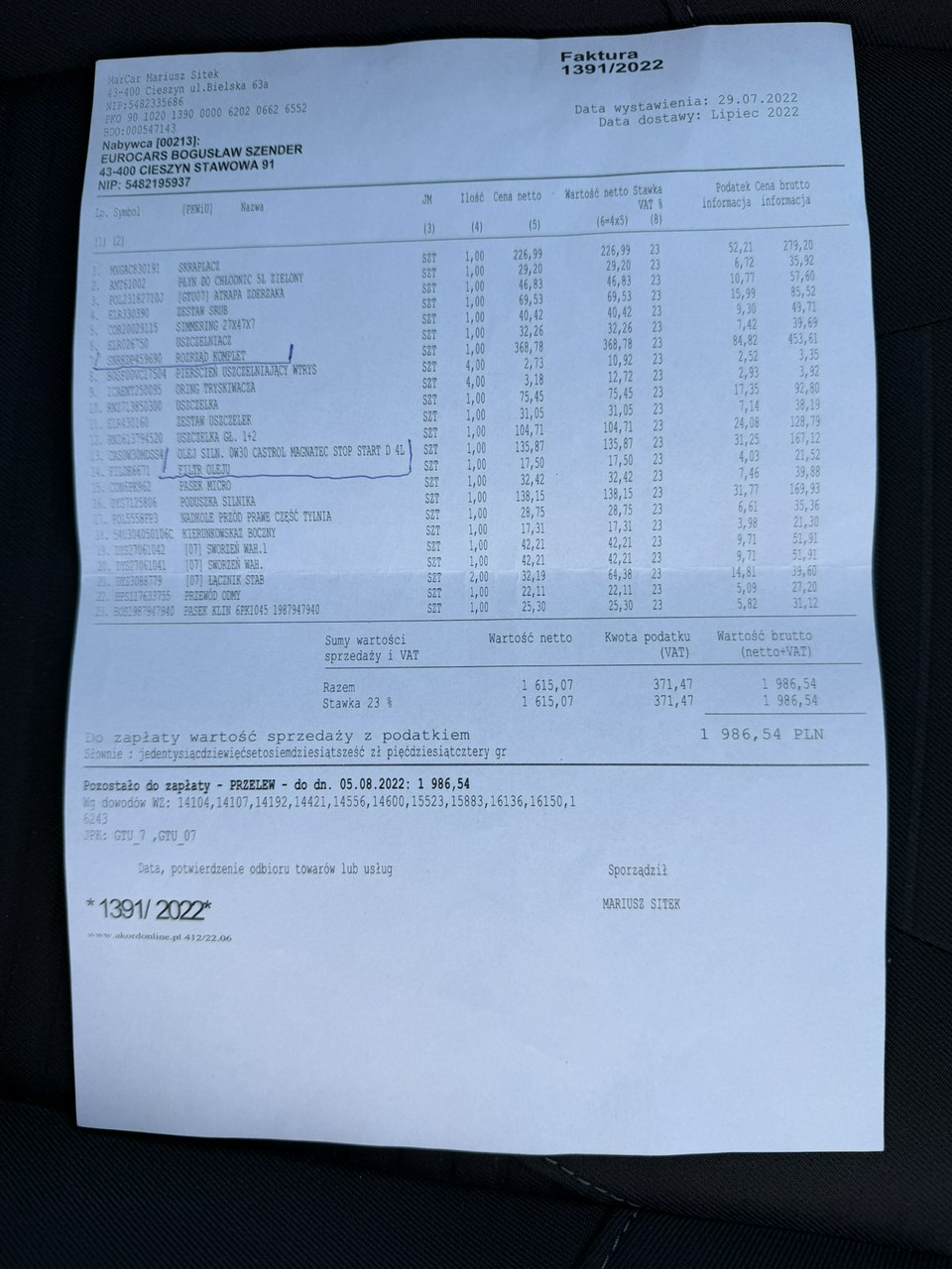 Szczegóły samochodu