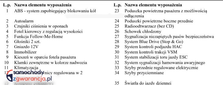 • Boczne poduszki powietrzne dla kierowcy i pasażera