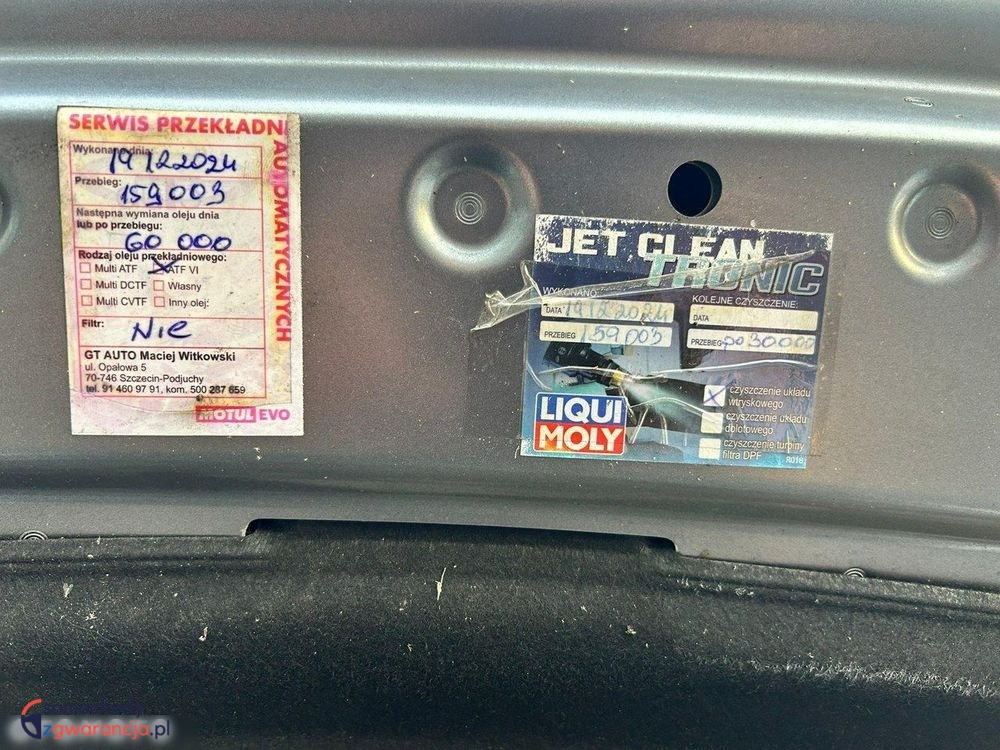 Od momentu importu samochód użytkowałem prywatnie i dbałem o regularny serwis. Ostatnia wymiana wszystkich olejów i filtrów miała miejsce 4 500 km temu, dodatkowo zostały wymienione tylne klocki hamulcowe. Przy przebiegu 159 000 km, 19.12.2024, wymieniliśmy olej metodą dynamiczną w skrzyni automatycznej, a także wykonaliśmy serwis czyszczenia układu wtryskowego. Dla poprawy jakości nagłośnienia auto zostało doposażone w subwoofer montowany w luku koła zapasowego.