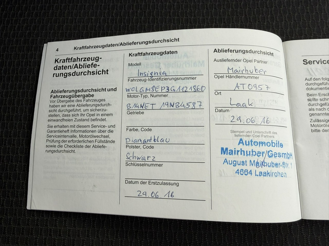 – Książka serwisowa