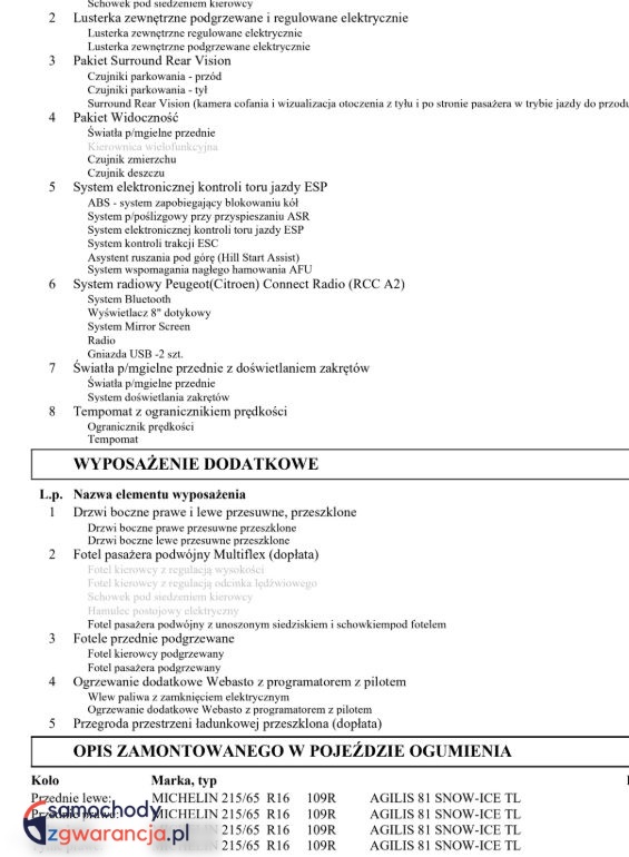 Szczegóły samochodu