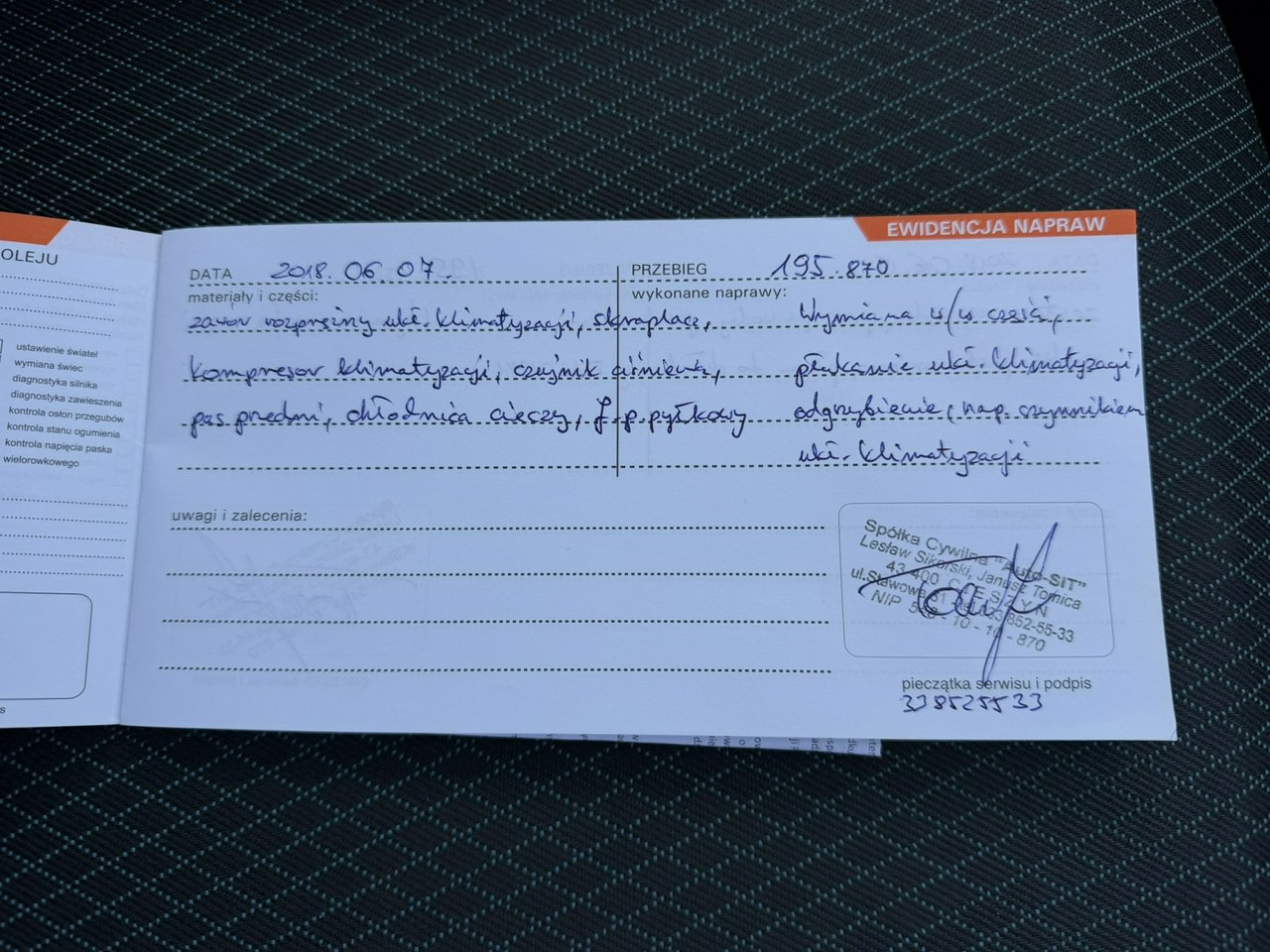 Szczegóły samochodu