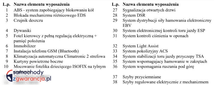 ✅ el. regulacja fotela kierowcy z pamięcią