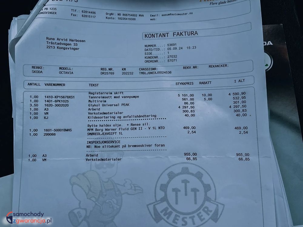 ✅ Gwarancja przebiegu – udokumentowany przez Norweski Urząd Komunikacji